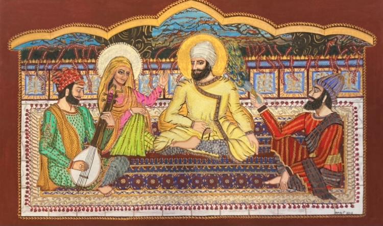 Medium….. gold and silver acrylic embedded with silver iridescent powder.